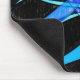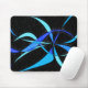 Um mousepad preto e azul abstrato moderno com um desenho de lápis colorido legal de um peixe finned azul ondulado.