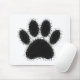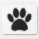 Uma pata preta de cão desenhando com efeito de dispersão. Imagem digital.