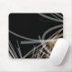 Este elegante mouse moderno apresenta um design abstrato orgânico na moda de fitas brancas e cinzas com sotaques dourados sobre fundo preto. As fitas brancas e cinzas translúcidas giram da direita para a esquerda em um padrão bem equilibrado e são complementadas por um abstrato dourado florescendo no canto inferior direito, para dar um pop de cor adequado a este elegante design preto e branco. Traga um toque de elegância moderna ao seu escritório doméstico ou ao seu espaço de trabalho, um acessório de mesa de tendências na moda para ela, ou um talento para pequenos escritórios para qualquer ocasião. Projetado com gráficos vetoriais, você pode criar seu próprio mouse pad personalizado alterando as cores de fundo e borda. Para criar o seu design personalizado, selecione "personalizar" e navegue até a seção de camadas para visualizar as imagens e alterar a cor de fundo ou outros elementos de design de acordo com o seu gosto ou use o botão "contate o designer" para obter ajuda.