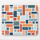 design de Meio século abstrato com forma laranja, vermelha, azul, azul-claro, azul-claro, turquesa, cor da mostarda e forma quadrada e retangular marinho em fundo branco