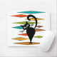 Ilustração colorida do estilo de Meio século abstrato com gato preto e decoração colorida de rombos em fundo branco