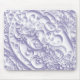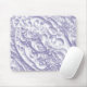 Uma coleção de flores margaridas e padrões roxas, intricadamente desenhadas, pastel roxo, que se enrolam num fundo branco.