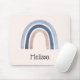Mousepad com um arco-íris giro e caprichoso. Aquarelas azuis e de pêssego.