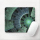 Mouse pad com "Cosmic Pod", abstrato, copyright © 2008, Susan Wallace. Um padrão labiríntico circular em tons de verde e azul, combinando formas geométricas em um design futurista complexo.