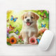 Num jardim vibrante cheio de flores coloridas, um filhote alegre senta no centro, irradiando pura alegria. Seus olhos brilhantes brilham com felicidade enquanto ele lança um sorriso emocionante.