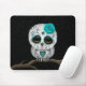 Este design bonito pelo artista Jeff Bartels caracteriza um chique nevado da coruja do bebê com grandes olhos roxos e escolha cor-de-rosa em sua cabeça. As linhas e os padrões de ponto de roda decoram a coruja branca pequena na tradição do dia dos crânios inoperantes do açúcar. O pássaro está sentando-se em um ramo com um céu nocturno enchido estrela visível no fundo. O corpo principal e pequeno feito sob medida excedente junto com os detalhes nas penas peludos cria uma combinação bonita de uns desenhos animados e de um olhar realístico. Este dia original e adorável do design inoperante é perfeito para todos os amantes dos animais.