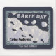 Uma representação alegórica dos perigos das alterações climáticas. Apresenta uma linha de pegadas, "pegadas de carbono", que derreteram através do conjunto de gelo polar. "Dia da Terra" é representado como gelo separador; "Pegadas de Carbono" como cinza ou fuligem; talvez quedas de petróleo. Por favor, caminhe levemente sobre a Terra. Personalize adicionando seu próprio texto.