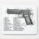Uma imagem do vintage de um diagrama da arma para um revólver semiautomático de 45 calibres.
