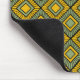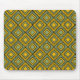 Este mouse pad tem um design de deco de arte em formas de diamante com linhas diagonais e diamantes coloridos em tons de verde e amarelo.