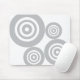 Canecas, camisetas, porta-garrafas. sacola ecológica, bloco de notas, cadernos, mousepad, USB, garrafa térmica e garrafa de água com discos cinzas sobre discos brancos