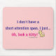" Eu não tenho uma capacidade de concentração curta, I apenas… Oh, olhe um gatinho!" Provérbio engraçado sobre ser confundido e esquecido com um gráfico bonito do gato do gatinho. Texto/pia batismal no roxo e no rosa. Com um fundo cor-de-rosa que possa ser mudado a toda a cor.
