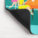 Este Mousepad do Jogo de Cartão Semanal para Mulheres Retro apresenta um desenho animado de quatro mulheres modernas meios séculos em uma festa de galinha. Eles estão socializando em uma sala de jantar de na moda. Em uma parede de tijolos turquesa e lacrimogêneo, há uma tela de desenho estendido de arte moderna no globo, disponível na loja Zazzle do StrangeLittleOnion. Eles têm bom gosto! Através de portas de vidro deslizantes, podemos ver os relvados e verdes gramados dos subúrbios. Por toda a rua, há uma casa cor de laranja elegante com um carro cor-de-rosa e branco estacionado na porta. De volta à sala de jantar, três mulheres estão sentadas numa mesa redonda com uma toalha de mesa laranja. Há uma ruiva num vestido amarelo, uma morena num vestido verde, e uma loira num vestido vermelho. Eles estão segurando cartas nas mãos. Quatro equipes estão na mesa à espera de serem cheias pela cabeleira ravena num vestido cor-de-rosa. Ela está carregando bandeja com uma carapaça de chá presa em cima dela. Todas as mulheres estão se divertindo muito, mas provavelmente deveriam ficar de olho na loira. Se o cartão que ela está segurando nas costas é qualquer indicação, ela trapaceia!