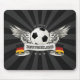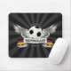 Design do mousepad do estilo do vintage para o suporte da equipa nacional de Alemanha que caracteriza uma bola de futebol com asas, a bandeira alemão e o canto - do "a alemanha dos geht Auf" - e estrelas do campeão.