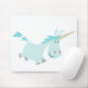 Um unicórnio de desenho azul correndo alegremente em um bocal. Essa criatura mítica e maliciosa está disponível em outros produtos e é totalmente personalizável.