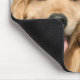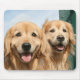 Este mouse pad apresenta uma fotografia em detalhe de dois cachorros felizes e sorridentes de recuperação de ouros do lado de fora.