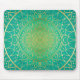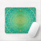 Um Pad Colorido de Mouse com um Dourado Mandala Floral brilhante e brilhante numa sombra Emerald de fundo aquoso verde. Simbolicamente, a esmeralda traz um sentido de clareza, renovação e rejuvenescimento, que é tão importante no complexo mundo de hoje. Ajuda a equilibrar as emoções e promove um sentimento de calma. No design de interiores, uma abertura de verde esmeralda pode energizar e adicionar uma sensação de frescura a uma sala. É também a cor do Heart Chakra. Design original pintado manualmente pelo SunFreeStar.