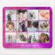 Este tapete do rato chique, na moda caracteriza doze de suas fotos pessoais favoritas, com sala para seu nome ou uma mensagem. O fundo é um rosa da aguarela/olhar roxo.
