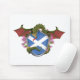 Um dragão escocês envolto em um escudo de bandeira escocês.