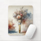 Buquê de flor surreal num pincel com fundo abstrato de cor d'água.
