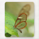 Duas borboletas aladas em vidro tocadas numa folha na Terra Maravilha da Borboleta. Foto de Ruth Jolly.