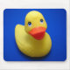 Um ducky de borracha amarelo em um fundo dos azuis marinhos