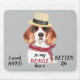Aqui está o mouse pad perfeito para o dono do Beagle! No meio está um retrato de um beagle vestindo um chapéu e óculos de sol vermelhos. Na parte inferior está o texto vermelho e preto que diz "Eu trabalho DURO para que meu BEAGLE tenha uma vida MELHOR". Bonita!