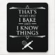 É o que faço, Assar e sei de coisas. Esta citação engraçada de cozinhar é um presente de excelente para um homem, mulher, adolescente e criança que adoram assar na cozinha. Também perfeito para um padeiro ou um trabalhador de padaria. Se você é um padeiro doméstico, ama as artes culinárias, e adora preparar um pão delicioso, muffins, bolos ou cupcakes no forno, então esse design humorístico é para você.