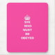 A paródia das mulheres engraçadas do vintage mantem o slogan calmo com ela que deve ser obedecida em uma coroa cor-de-rosa feminino brilhante do cor do fundo e a branca em uma tiara real da princesa ou. Visite a LOJA de CUSTOMIZEDGIFTS para produtos de harmonização e mais mantêm o design inspirado calma da tipografia