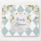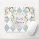 Mousepad Elegant Monogram White Roses Green Leaves Diamond
