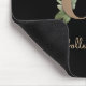 O mouse preto elegante apresenta um monograma botânico dourado no centro.