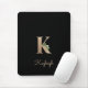 O mouse preto elegante apresenta um monograma botânico dourado no centro.