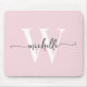 Mousepad Elegante Rosa Bege Feminino Nome Monograma Script