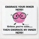 Um design para todos os nerd lá fora (como eu!)! "ABRAÇA O SEU NERD INTERNO! A não ser que seja fofo.... ENTÃO EMBRAÇA O MEU NERD INTERNO!" Espalhe o amor do nerd com este design fofo, engraçado e incrível! Caractere 'Nerd interior' desenhado à mão e colorido digitalmente. Copyright 2013 por Sunny