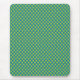 Um Mousepad atualizado, com um padrão de bolinhas verdes-claras (Tender Shoots) e azuis-escuros (Mônaco Blue) em tamanhos variados em um fundo verde-esmeralda.