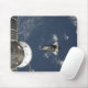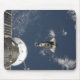 Space Shuttle Endeavor, uma espaçonave russa é visível no primeiro plano apresentado com vista aérea.