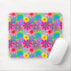 Este mouse pad tem um design de flores dos anos 70 em várias cores.