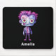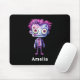 Mouse pad com uma bela ilustração. Monstro de Frankenstein com cabelo rosa e roxo e um casaco e gravata.