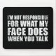 Se você gosta de citações sarcásticas engraçadas ou designs humorísticos excelentes então esse slogan original "Eu não sou responsável pelo que meu rosto faz quando você fala" é para você. É um presente excelente para sua família, amigos ou para você mesmo! Esta design é ideal para quem ama sarcasmo e humor. Se você gosta dessa citação engraçada, veja trabalhos de arte mais parecidos na loja Omitay. Fique seguro e obrigado você por apoiar um artista local.