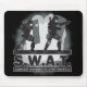 Dois membros da equipa fortemente armados de S.W.A.T. com protetores obtêm prontos para a batalha! Grande texto de S.W.A.T. e armas e texto especiais menores das táticas abaixo. Grandes presentes da equipa SWAT e da polícia!