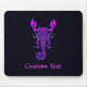 Ícone Escorpião. Ícone roxo inspirado por design de nó celta. Cor de fundo personalizada. Texto personalizado.