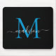 Placa de Mouse Elegante de Roteiro Menino Verde Brilhante Monograma Azul Elegante