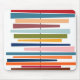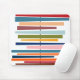 Este mouse pad tem um design moderno do século médio de linhas horizontais coloridas em uma linha preta vertical com círculos.