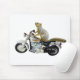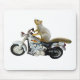 Um esquilo monta a motocicleta histoy, cauda que funde no vento.