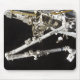 O canadense de manipulação remota de estação espacial (Canadarm2), durante as atividades de desacoplamento com robôs articulados.