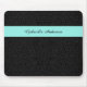 Um elegante preto no mousepad de impressão leopardo preto com uma faixa aqua. Este padrão de animais pré-filmados e quicos pode ser personalizado adicionando o nome de uma mulher moderna.