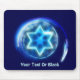 Uma imagem fractal azul e roxa de uma estrela de David em um círculo. Personalize adicionando seu próprio texto.