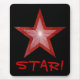 Design moderno com uma estrela brilhante, cintilante vermelha e branca sobre fundo preto. Mousepad com um design personalizável vermelho, preto e branco para você personalizar com seu próprio texto, imagens e ideias. O texto pode ser facilmente alterado usando o modelo fornecido ou clique no botão 'Personalizar o texto' para fazer outras alterações. Criado por Jess Perry usando fotografias originais e técnicas digitais.