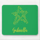 Uma exibição vibrante de nome personalizado é destacada dentro de uma constelação de estrelas amarelas formando uma estrela central proeminente, colocada contra um fundo verde calmante, imprimindo um toque caprichoso e personalizado com um charme celeste. O nítido contraste entre as estrelas amarelas luminosas e o pano de fundo verde-suave cria uma harmonia visual encantadora, oferecendo um sotaque encantador e encantador.