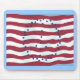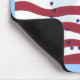 Pintura de uma bandeira vermelha e branca listrada com um sinal de paz de estrelas azuis, impressa em mousepads. Pode ser personalizado.