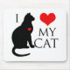 Silhueta preta do gato que senta-se com a expressão, "eu amo (usando um coração como um símbolo para o amor da palavra) meu gato."